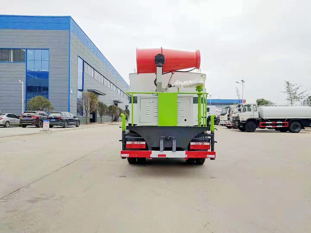 配置說明霧炮機具有自主**技術,**號為(201621305361.8 / 201630487869.3),十五年制造經驗,產品全面通過湖北省及本地質檢局檢驗合格,可根據需求選配不同的射程規格,可遠程無線遙控操作作業,采用國內外知名發電機組及風扇電機、電控系統、大功率水泵。抑塵車具有灑水車的全部功能:前部沖洗路面噴灑裝置、后部扇形降塵噴灑裝置,兩側噴灑裝置,后部大工作平臺、平臺上安裝綠化灑水炮(炮噴射形狀可調),可調直沖狀、大雨、中雨、毛毛雨,可連續調節,其它:自流閥及消防接頭、水管3米2根,罐體防腐處理。